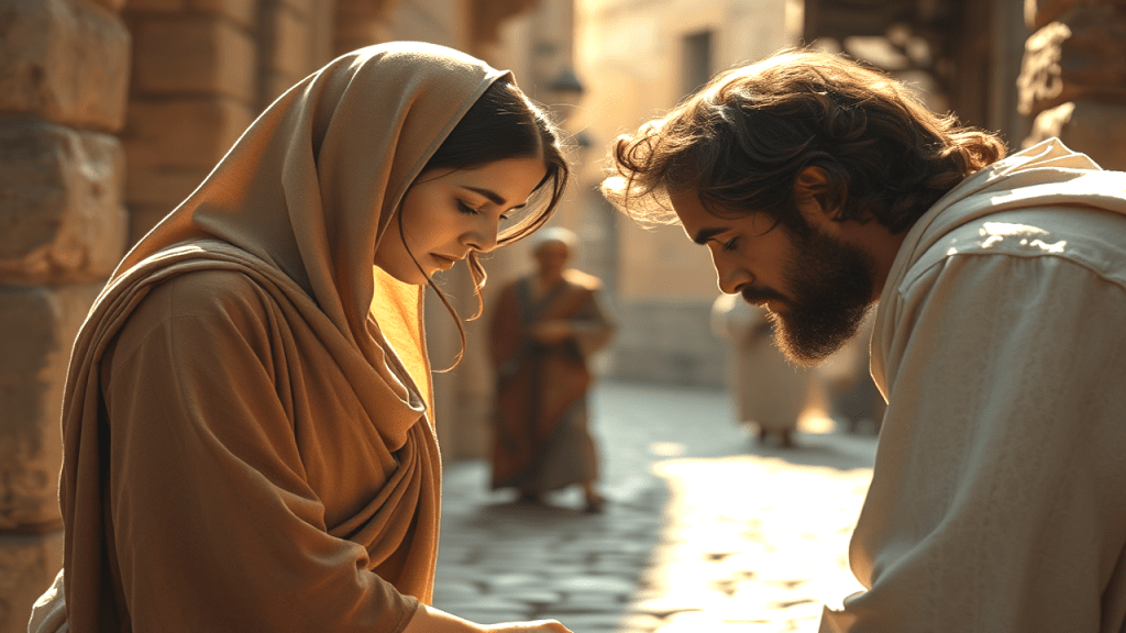 One day, a woman who had been suffering from a flow of blood came up behind Him and touched the edge of His cloak, and immediately she was healed.