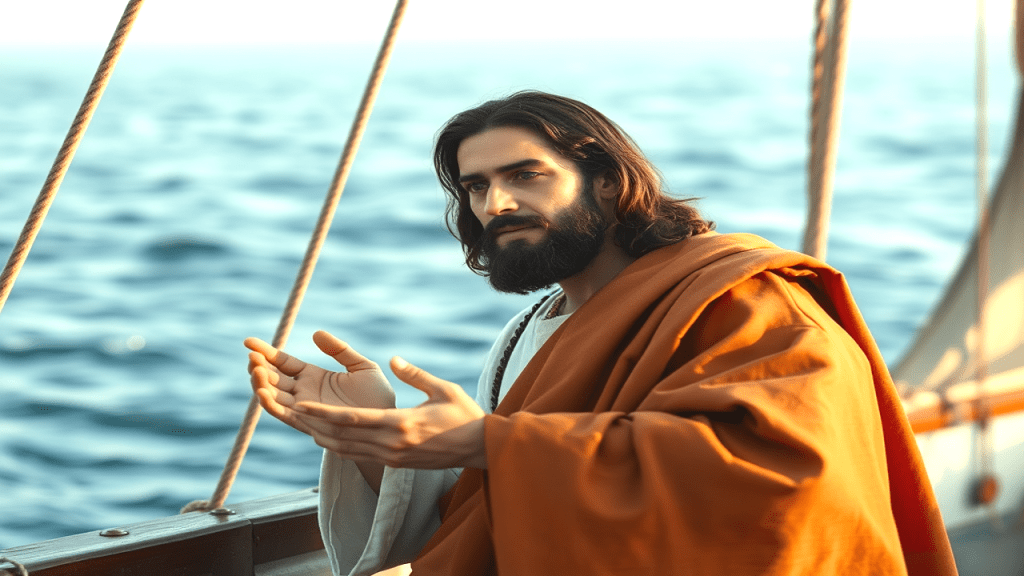 “Y entrando en una de aquellas barcas, la cual era de Simón, le rogó que la apartase de tierra un poco; y sentándose, enseñaba desde la barca a la multitud. Cuando terminó de hablar, dijo a Simón: Boga mar adentro, y echad vuestras redes para pescar. Respondiendo Simón, le dijo: Maestro, toda la noche hemos estado trabajando, y nada hemos pescado; mas en tu palabra echaré la red. Y habiéndolo hecho, encerraron gran cantidad de peces, y su red se rompía”.