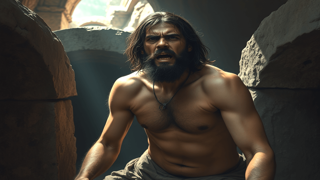Jesus and his disciples arrived in the land of the Gadarenes. There appeared a demon-possessed man, naked, who lived among the tombs.
